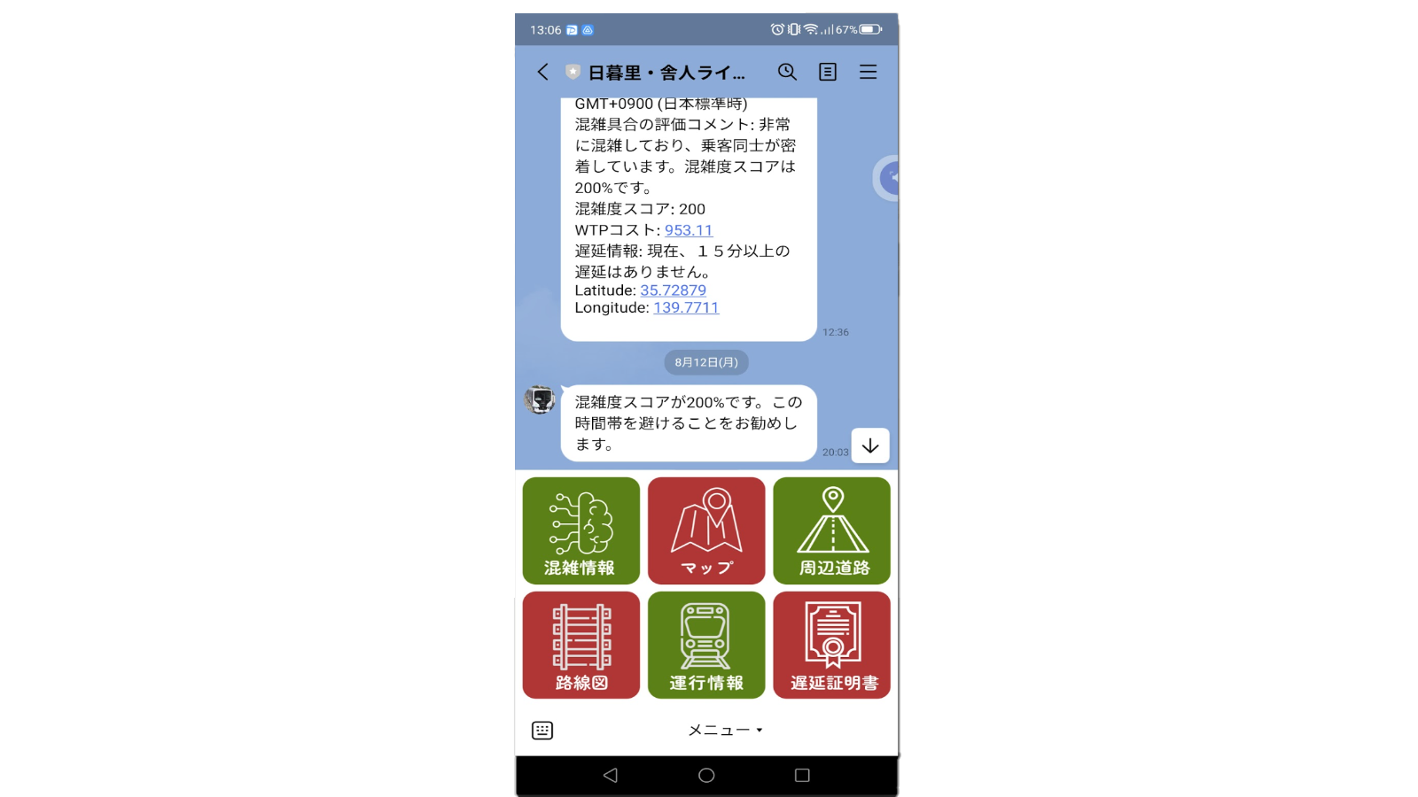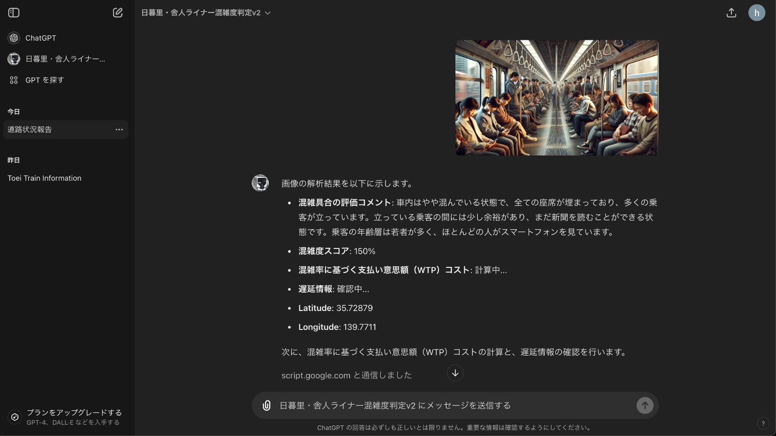 本提案の成果物は、AI技術を活用した日暮里・舎人ライナーの混雑緩和と利用促進を実現するソリューションです。電車内の映像からキャプチャ画像を取得し、画像分析AIを用いて乗客の人数を分析。これに基づいてリアルタイムで混雑度を算出し、利用者にはLINEを通じて混雑情報や時間変更の提案を通知します。さらに、これらのデータはターゲット広告や地域の活性化計画に活用され、痴漢や高齢者の転倒防止に役立つ学習データも生成されます。このシステムにより、乗客の快適性と安全性を向上させるとともに、運営効率の改善や地域経済の活性化を促進します。【作品サイトは閉鎖済み】