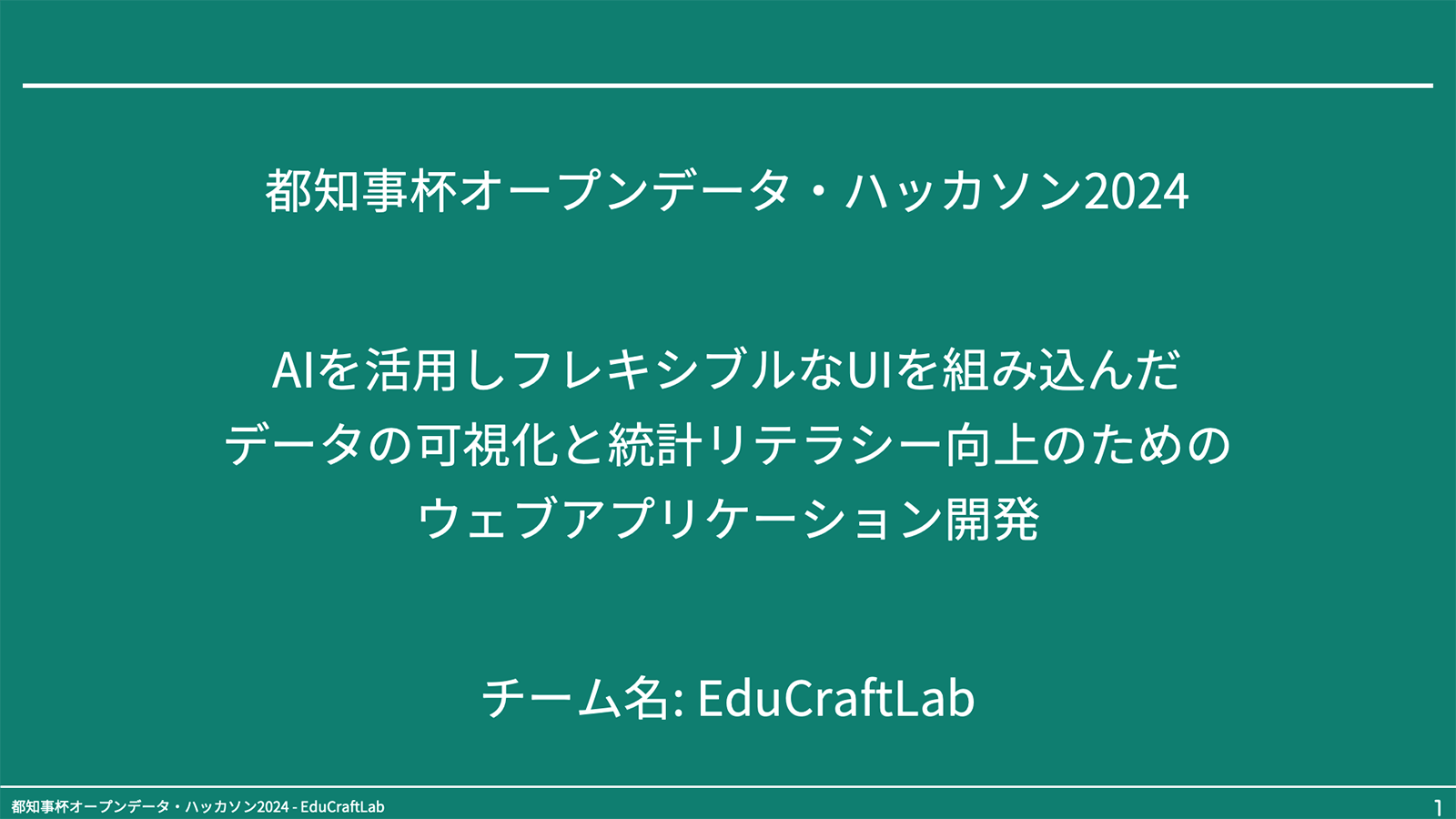 本システムは、ユーザーが特定のURLまたはデータを入力するだけで、AIがデータの特性を分析し、視覚的に理解しやすい形に可視化します。 システムはまず、入力されたURLから一意のデータを特定し、もしデータが表形式であれば、そのカラム情報を解析します。その後、AIがデータの内容を推定し、可視化方法(散布図、回帰分析など)を選択します。さらに、ユーザーがデータに触れることで自然に統計リテラシーを育みやすくするサポートを提供し、具体的な解説を提供します。 このように、データ科学の難解さを解消し、どのようなユーザーでもデータの力を引き出せるシステムを目指します。